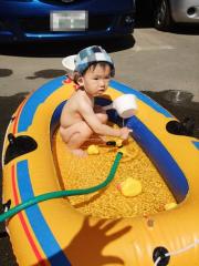 朝から暑いので午前中は庭でじいちゃんと水遊び