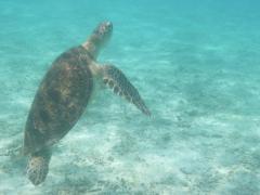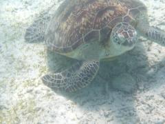 海ガメは満潮の時間にビーチにやって来て、お食事をして帰ります。