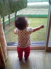 おしりをキレイに洗ってからは、窓の外をじーっと見ていました。