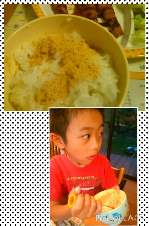 今夜の夕食は子供たちふたりの強いリクエストにより「きなこご飯」