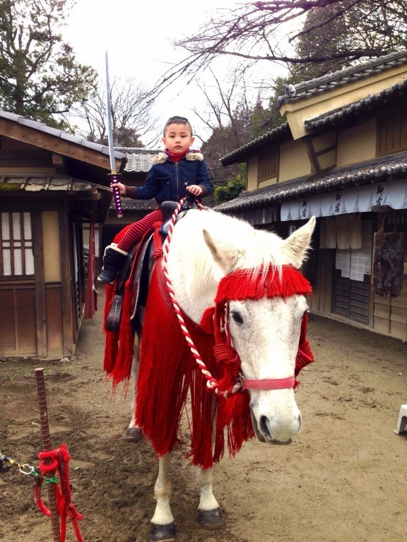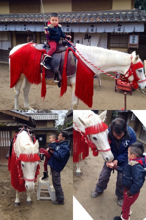 外国の方の殿&姫に出会い、お互いが『一緒に撮らせてください』と撮影 ↓パチリ映画村の至る所にある顔出しパネル ↓パチリそして、懐かしの暴れん坊将軍で本当に出演してた白馬に乗って ↓パチリまたがったらスタッフの人が離れて、誰も持たず、紐にもくくられてなく、正真正銘界治1人で乗った!!