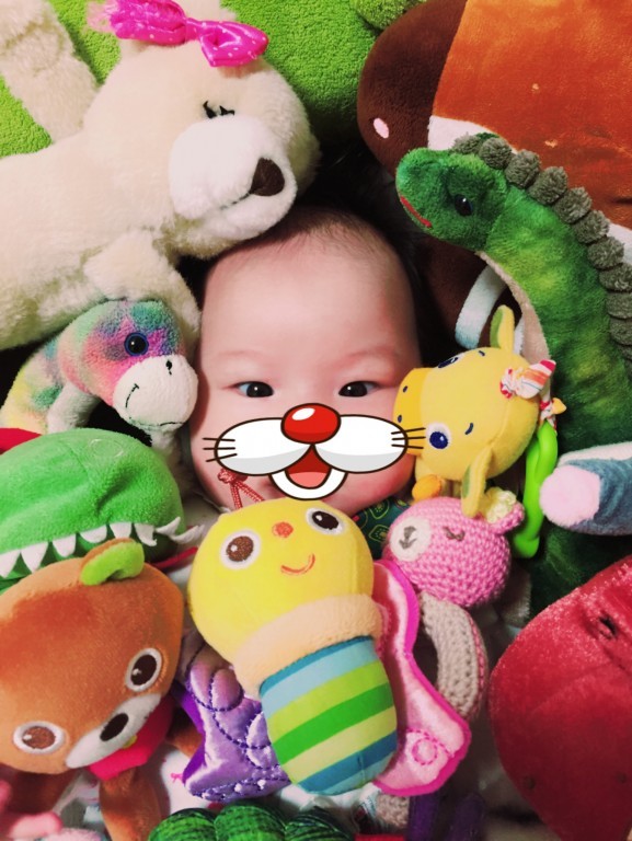 ママ友さんに教えてもらった人形と撮る写真。並べるだけでなんとなく手を込めて撮りました感が伝わってきて満足!