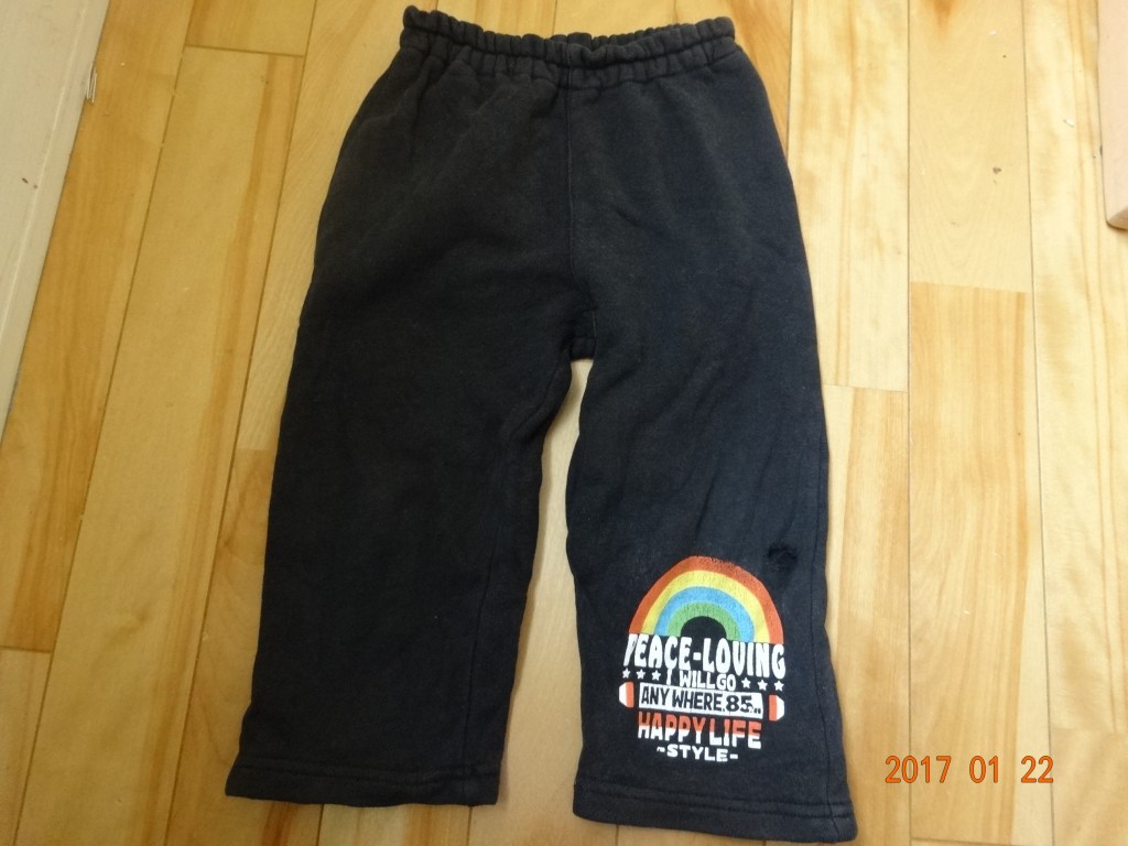 画像2枚目のようにプリントの上あたりに穴があります。補修して保育園のお着替えなどに!