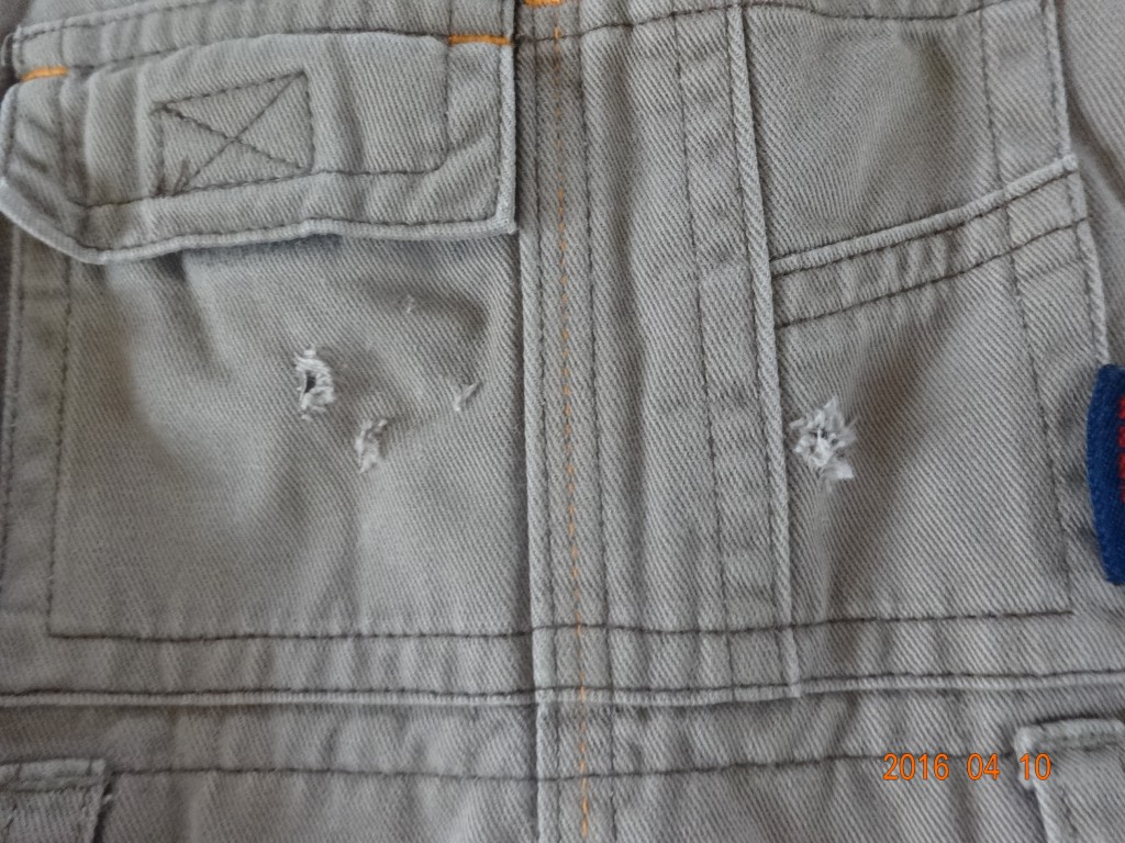 画像2枚目のように胸ポケットのところに擦れてあいた穴があります