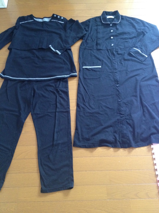 犬印本舗のガウン付きの黒のマタニティパジャマです。