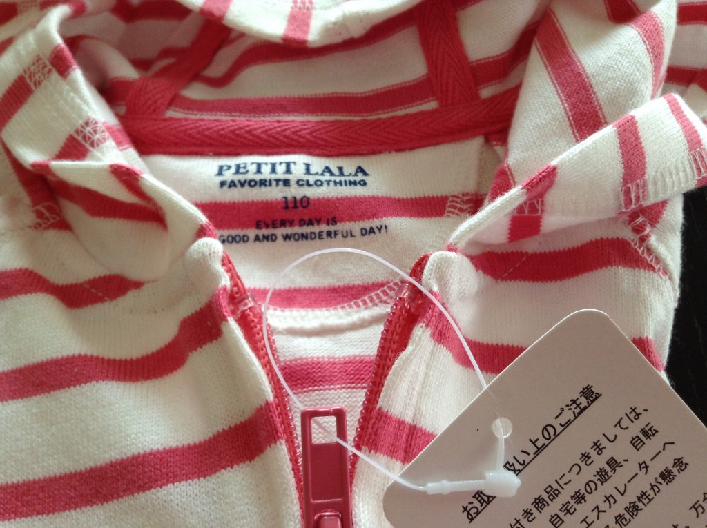 ・ピンク×白のボーダー柄のパーカー、110サイズです。