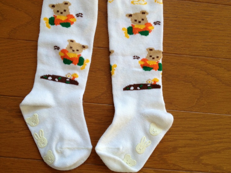 未使用のくま柄タイツで、サイズは60〜70cmです。