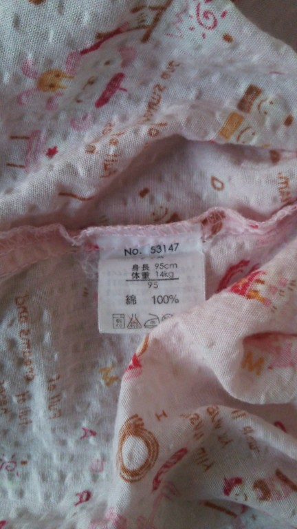 サイズ95腹巻きつきパジャマ。