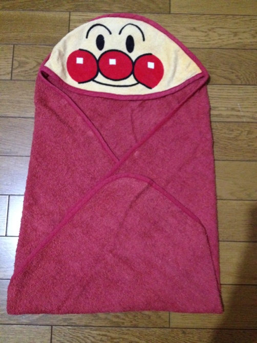 アンパンマンのフードがついた薄手のバスタオルですが、おくるみがわりとして数回使用しました。