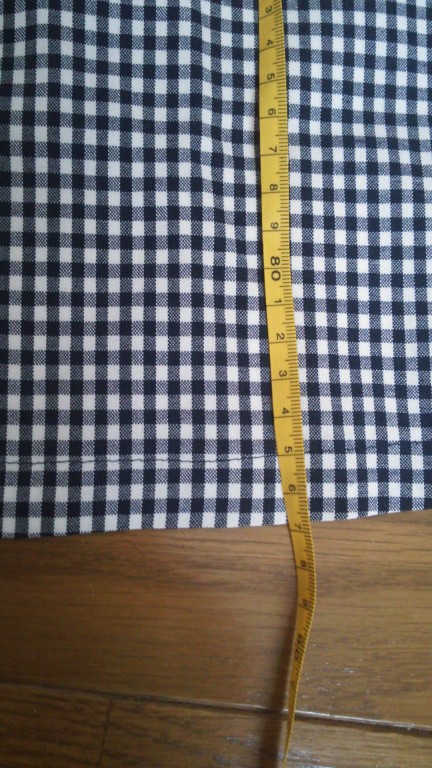 ミニ丈で画像の位置で裾まで87センチほどです。