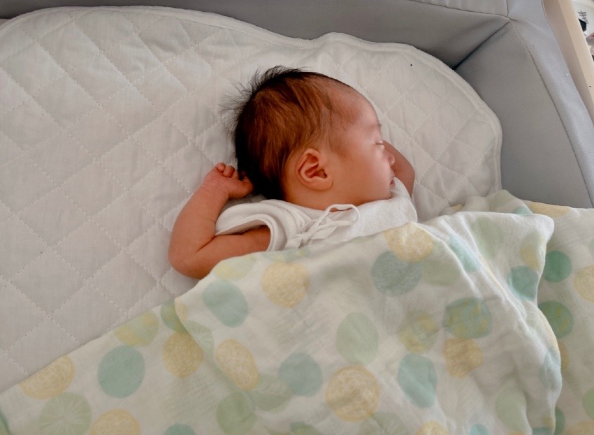 1人目も2人目も同じおくるみに包まれてぐっすりねんね。