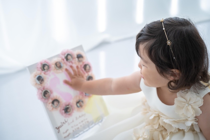 手形足形の近くには、出生時から1歳までの身長と体重の記録や、生まれてきてくれてありがとうのメッセージを✨