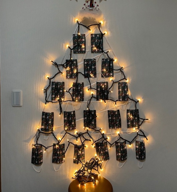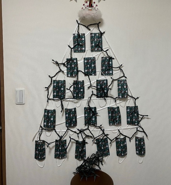 壁掛けクリスマスツリー🎄 我が家はとても狭いのでなんとかクリスマスツリーを飾るために壁にフックを取り付けて、そこに大量に余ったクリスマス柄のマスクとLEDライトを引っ掛けたらクリスマスツリーができました🙌 ライトアップのときもライトアップしないときもなかなか面白い出来になりました🤣 風邪を引いたらここのマスクを一つずつ使っていこうかなと思っています😷 報告する 公園で拾った材料で コメント コメント ( 0 ) この記事へのコメントはありません。 コメントするためには、 ログイン してください。