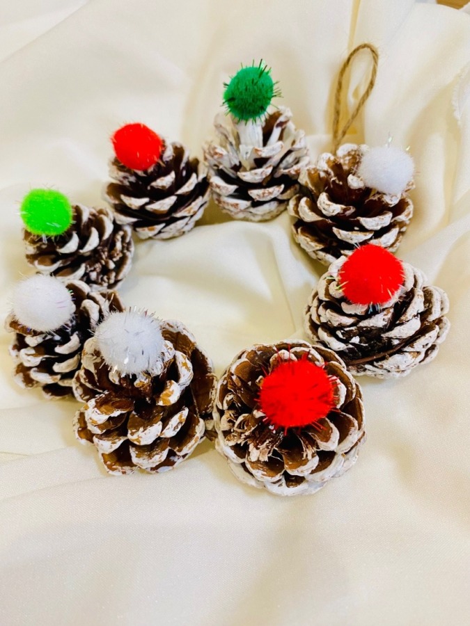 娘と松ぼっくりでクリスマスリース作り🎅💗
