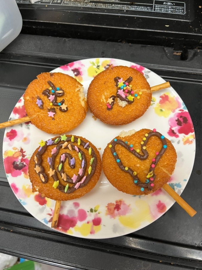 ポッキーを刺して、飾り付けして、、、クリスマスケーキ食べるのが楽しみですね!