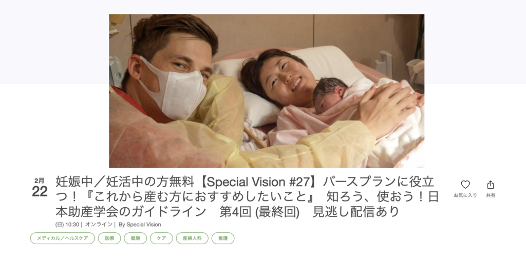 ▶︎ 妊娠中/妊活中の方無料【Special Vision #27】バースプランに役立つ!『これから産む方におすすめしたいこと』 知ろう、使おう!日本助産学会のガイドライン 第4回 (最終回)